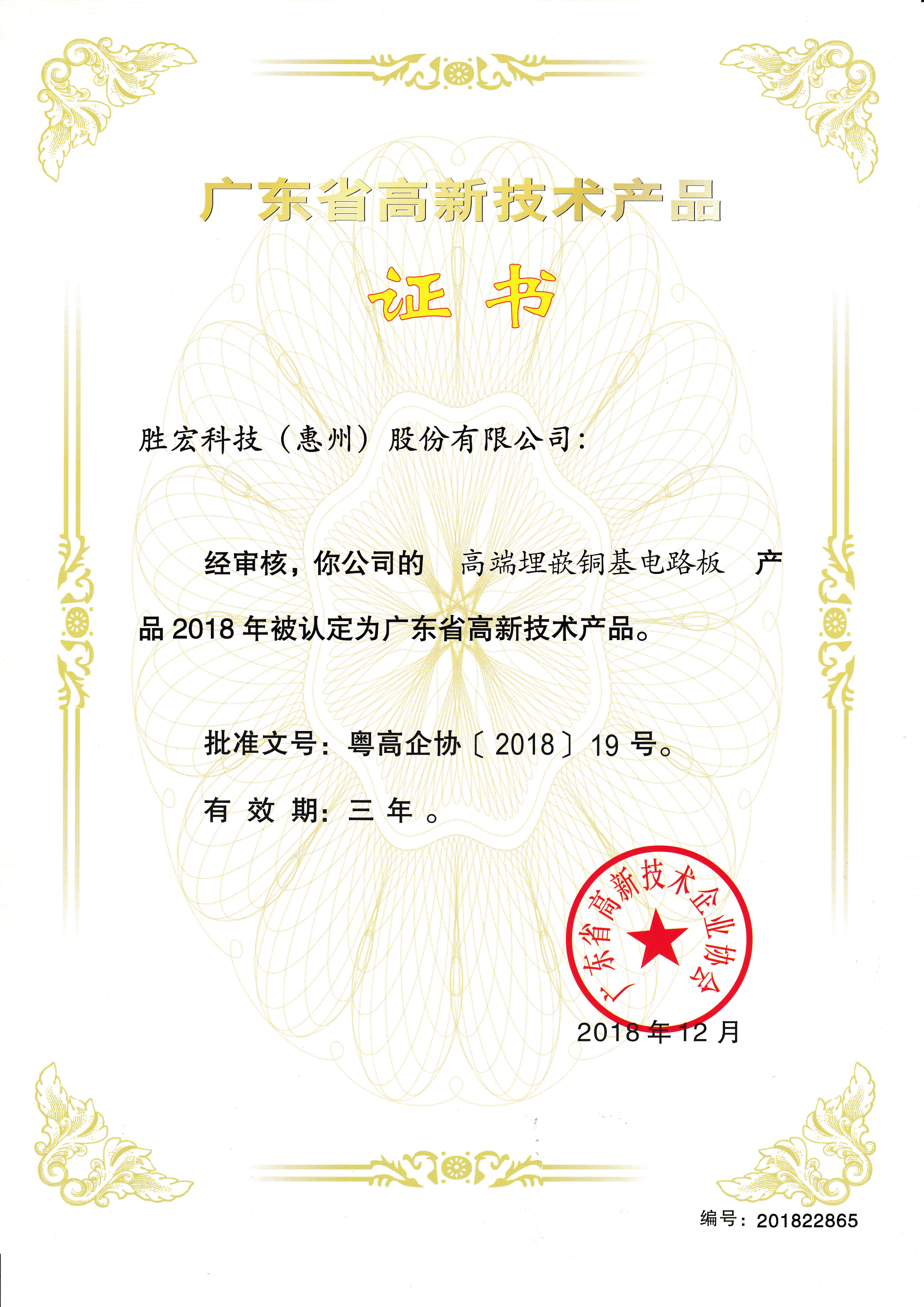“高端高頻電路板”名優(yōu)高新技術(shù)產(chǎn)品證書