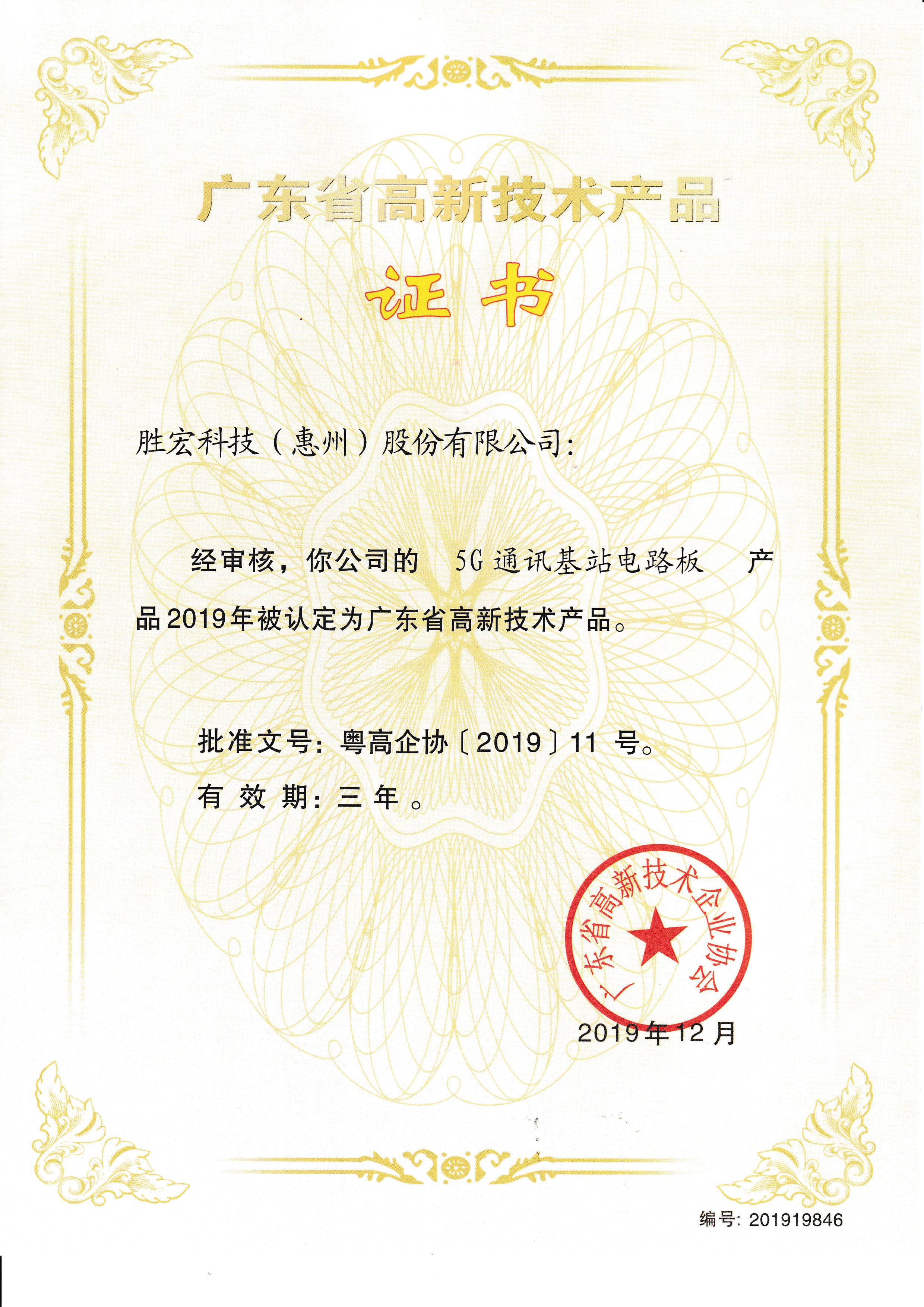 “5G通訊基站電路板”高新技術(shù)產(chǎn)品證書