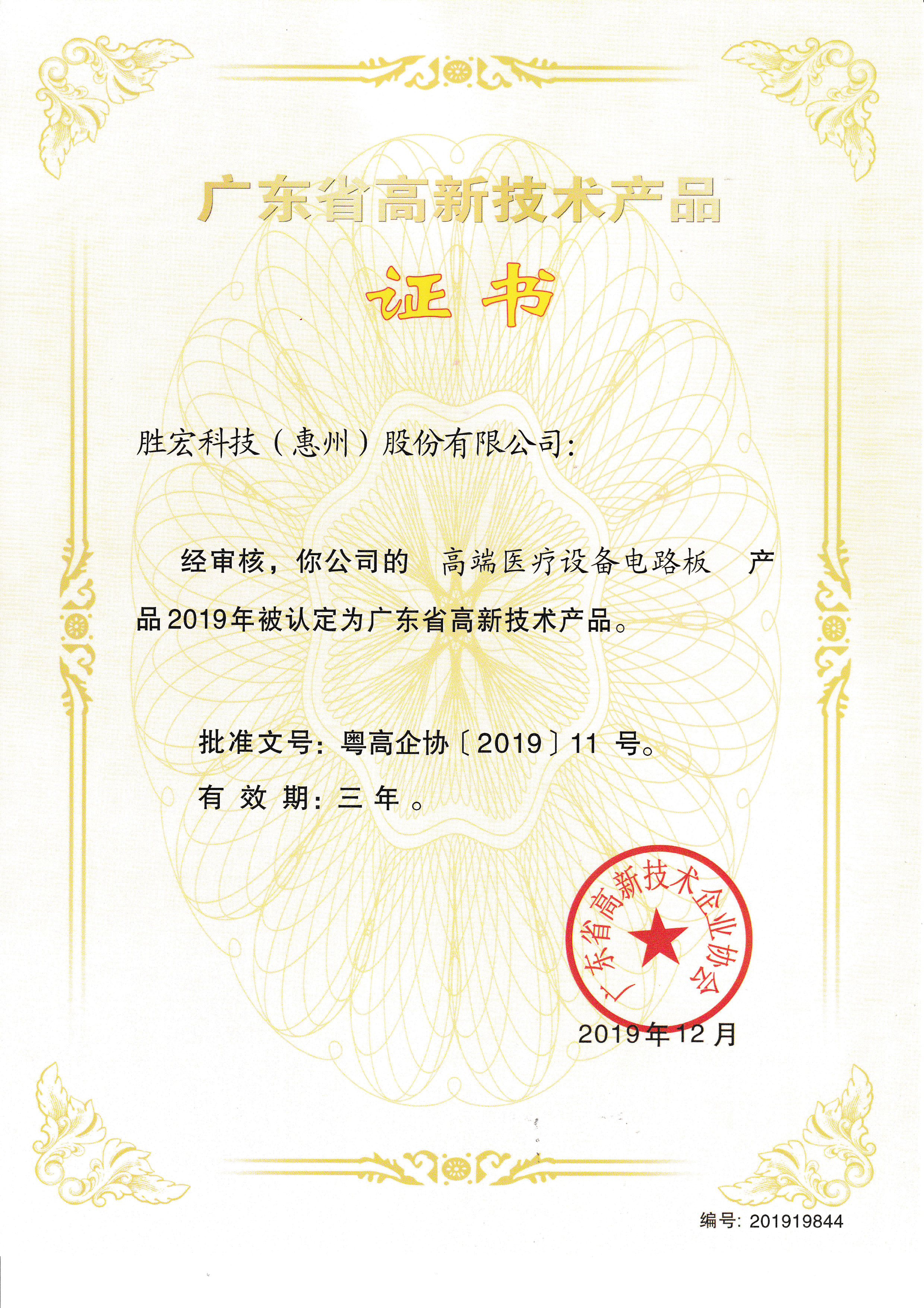 “高端醫(yī)療設(shè)備電路板”高新技術(shù)產(chǎn)品證書