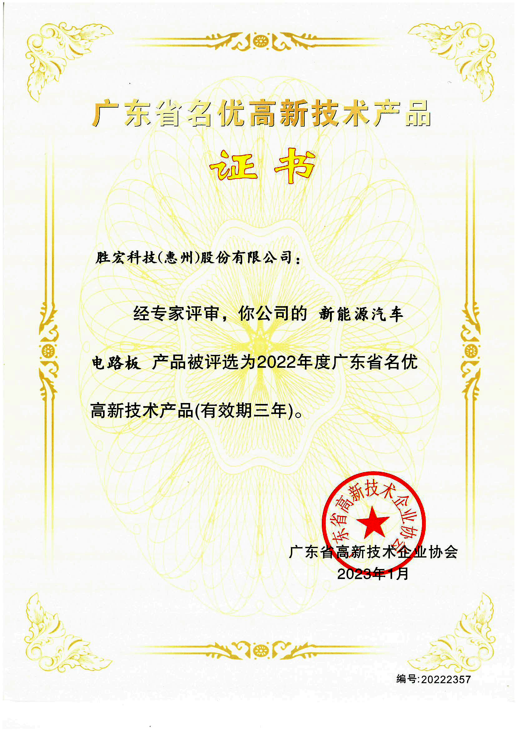 “新能源汽車電路板”名優(yōu)高新技術(shù)產(chǎn)品證書